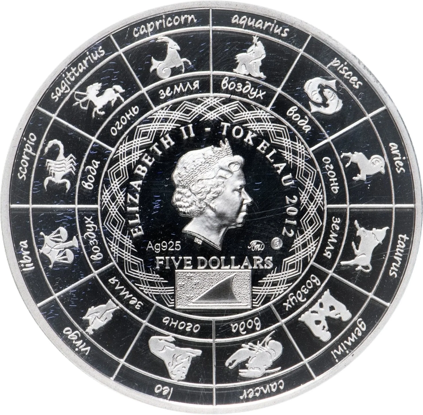 Queen Elizabeth II effigy encircled by zodiac signs.