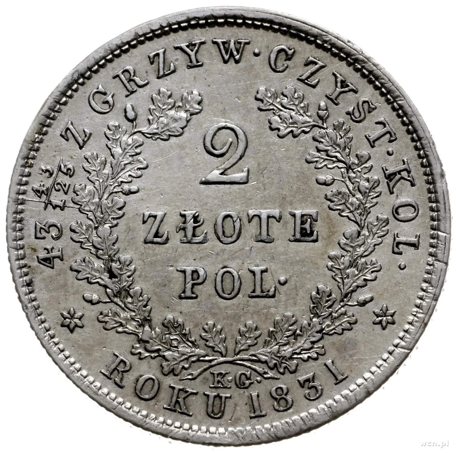 Forty-three forty-three one-hundred twenty-fifths zlotys in pure coinage from the year 1831.