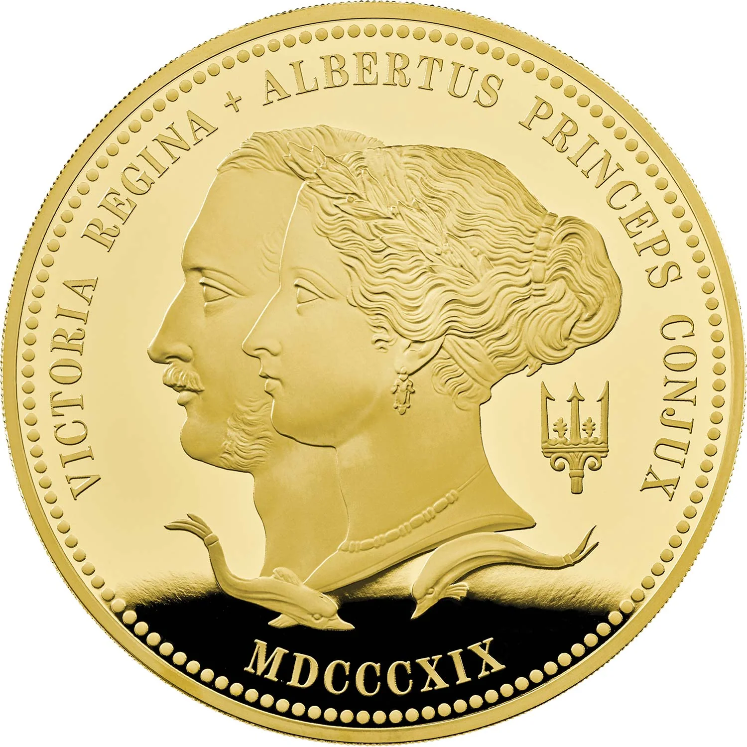 Conjoined portrait of Queen Victoria and Prince Albert, legend encircling, date in Roman numerals below.