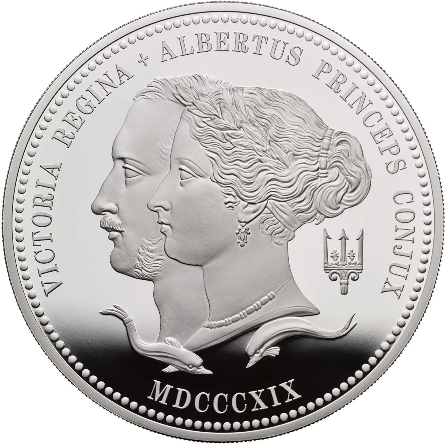 Conjoined portrait of Queen Victoria and Prince Albert, legend encircling, date in Roman numerals below.