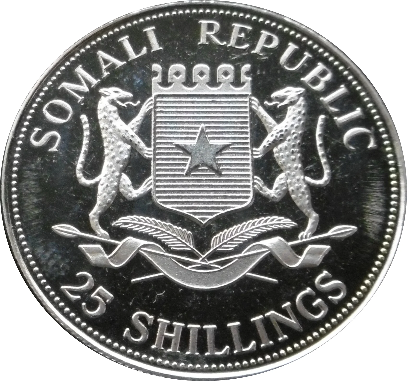 Somali Republic coat of arms in midfield.