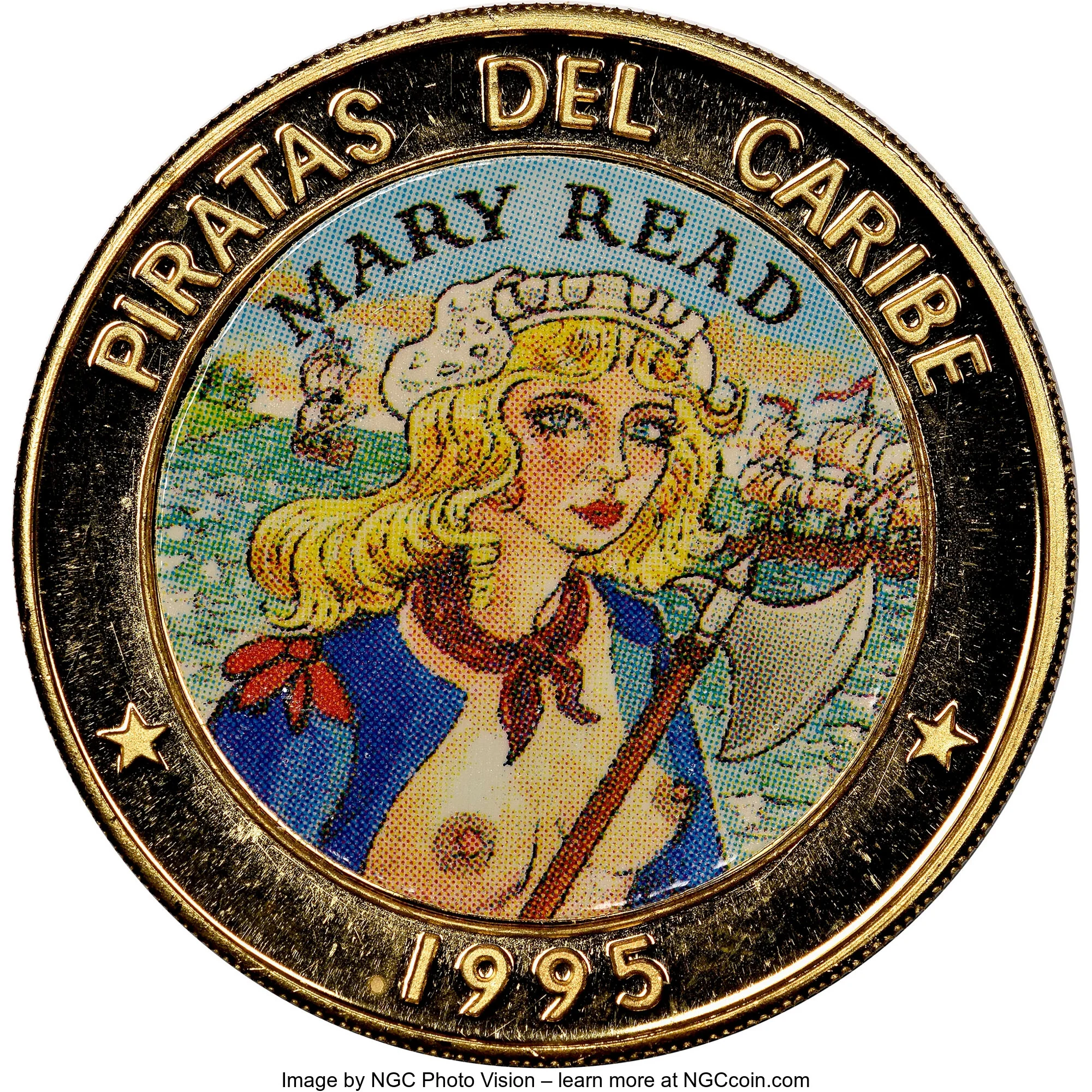 Mary Read, colorized. Series name above, issue date below.