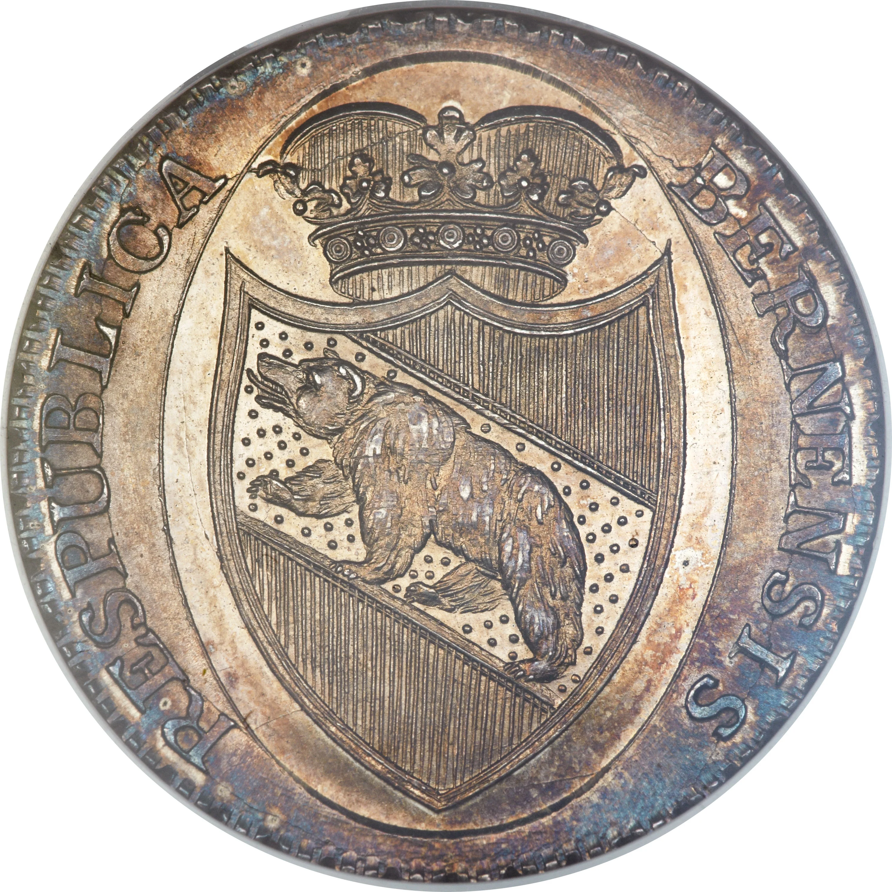 Crowned bear in a pointed oval shield.