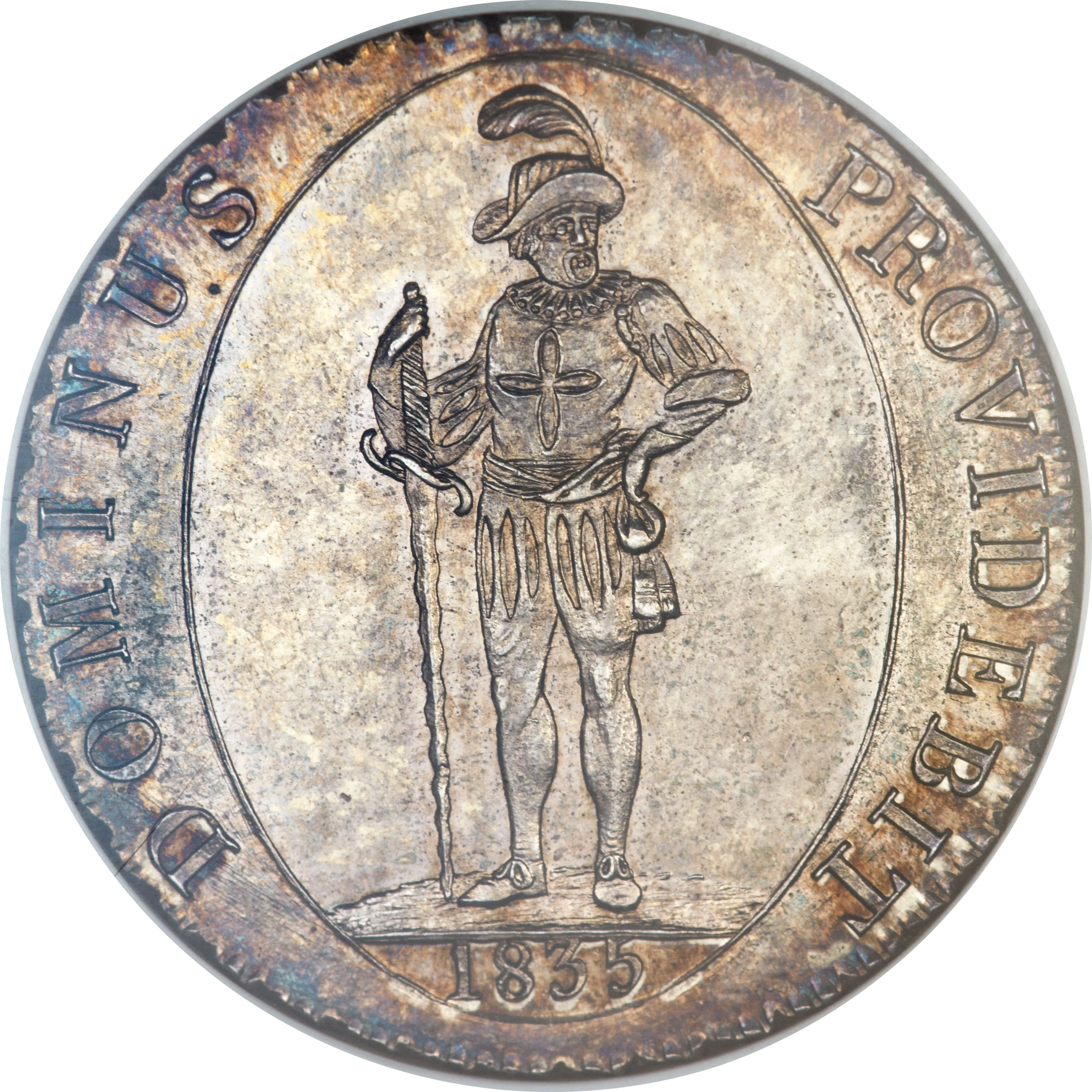 Knight atop date in oval
