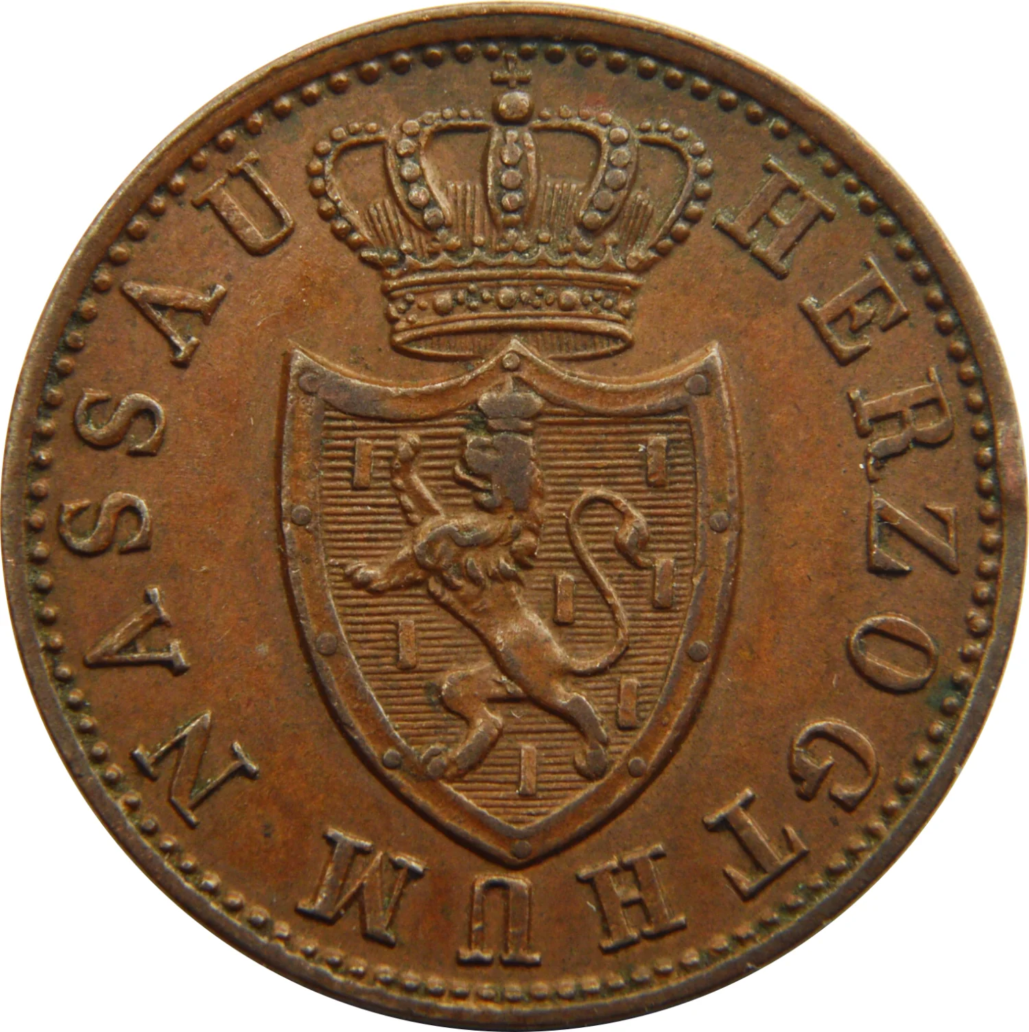Crowned Nassau coat of arms: a lion rampant left on a billet-sown field, encircled by the legend.