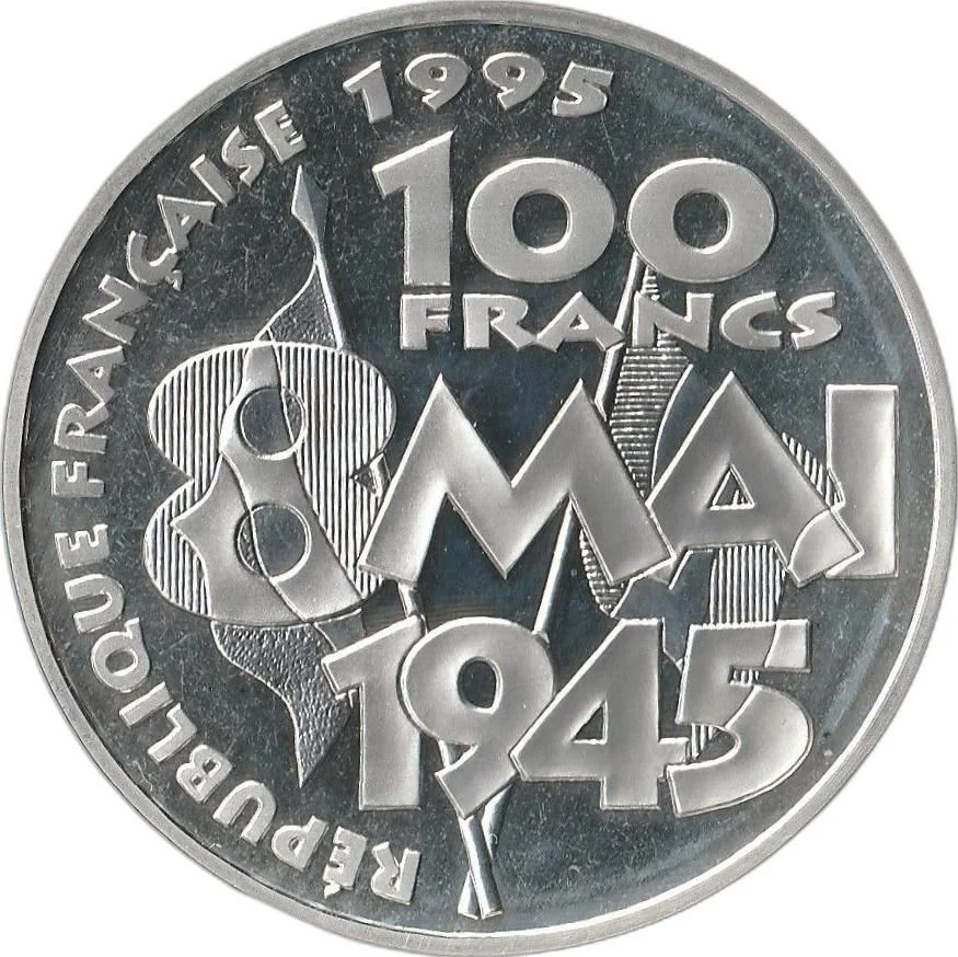 2 French flags with "8 MAI 1945" overlaid.
