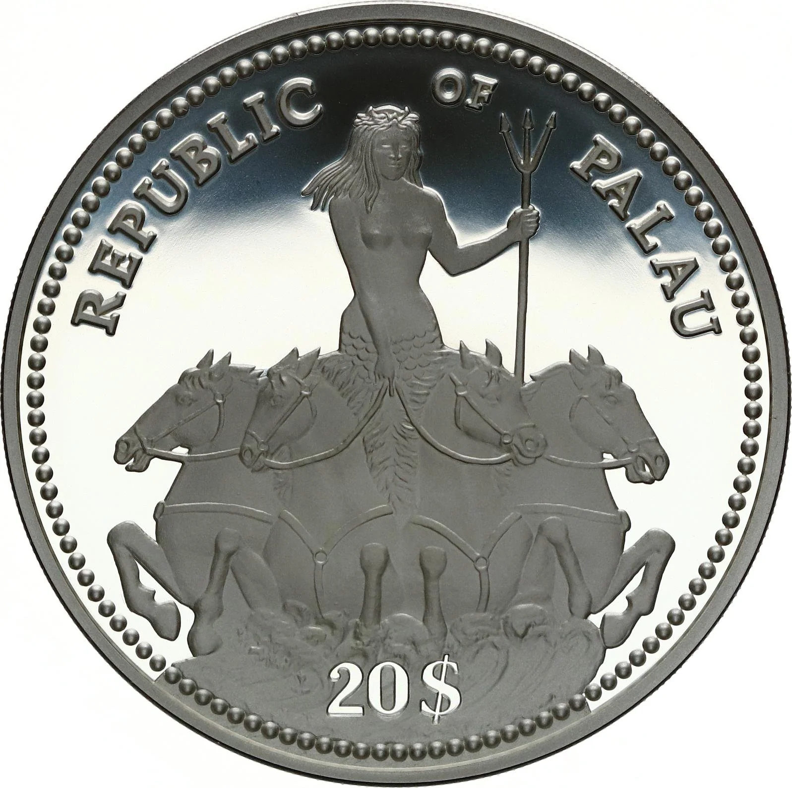 A mermaid driving a quadriga, trident in hand.