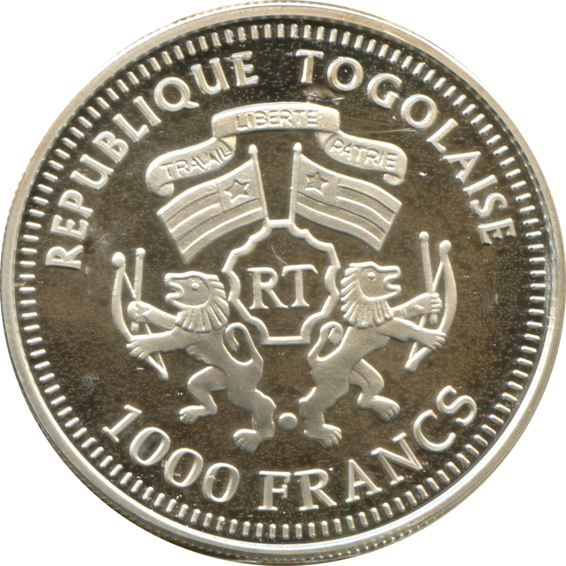 Togo coat of arms above value.