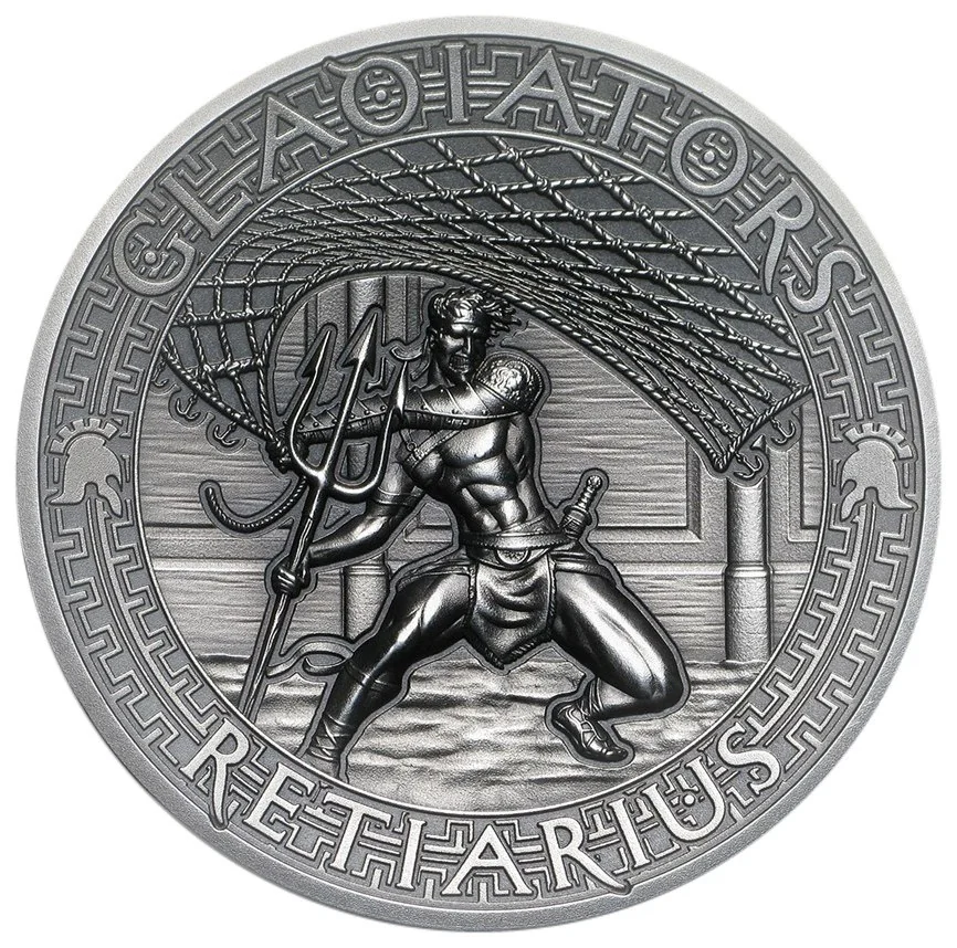 A Retiarius wielding a trident and casting a net.