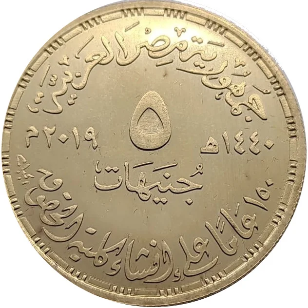 Obverse Egypt 5 Pounds Gold Faculty of Law, Cairo University 2018 Reverse – Reverse Egypt 5 Pounds Gold Faculty of Law, Cairo University 2018 Obverse