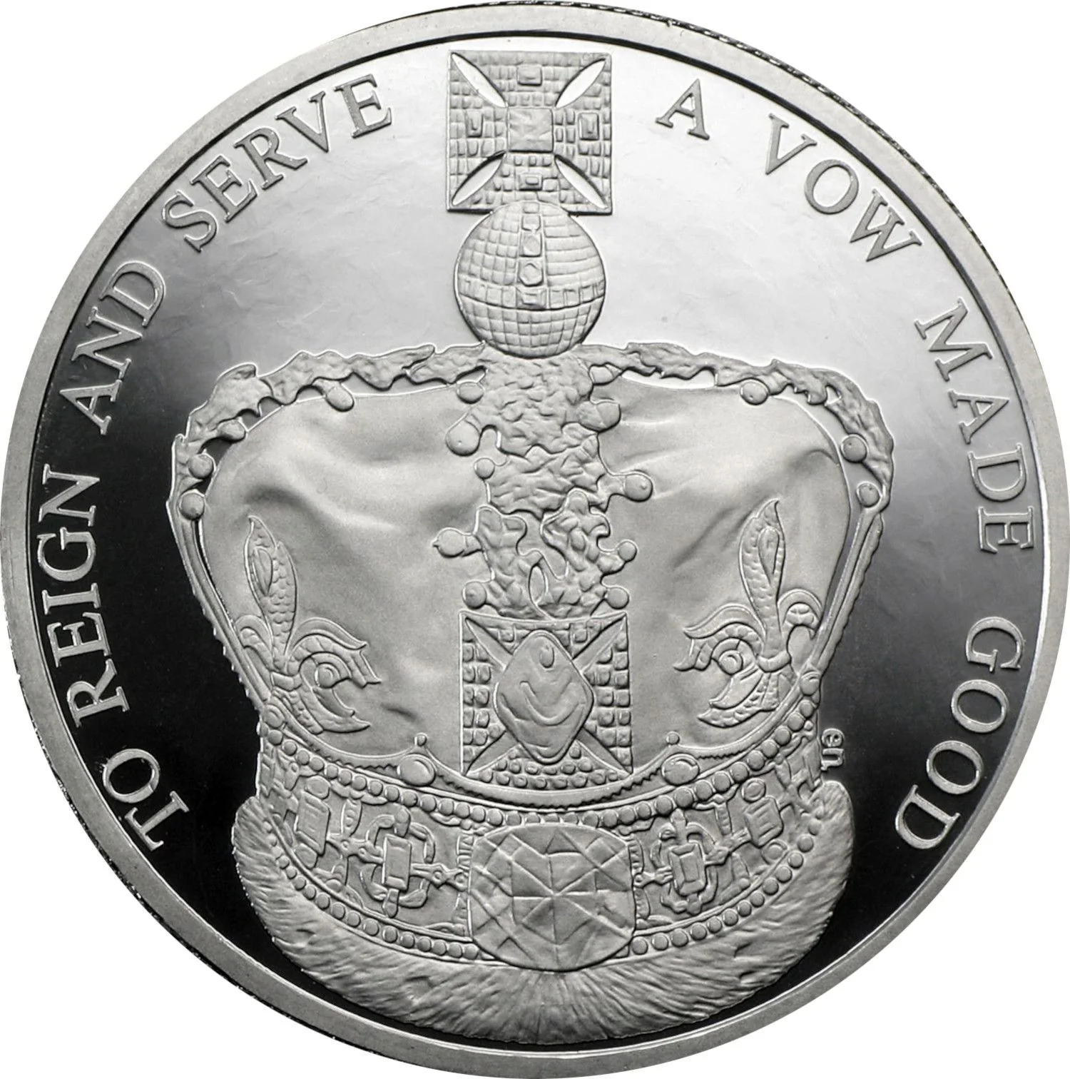 The Imperial State Crown, encircled by legend.