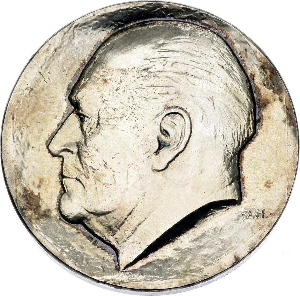 Bust of King Olav V facing left, engraver's initials below.