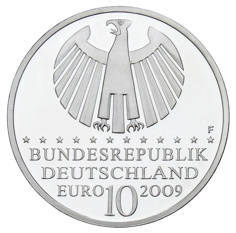 Federal eagle with EU stars, Stuttgart "F", "BUNDESREPUBLIK DEUTSCHLAND", "10 EURO", and year.