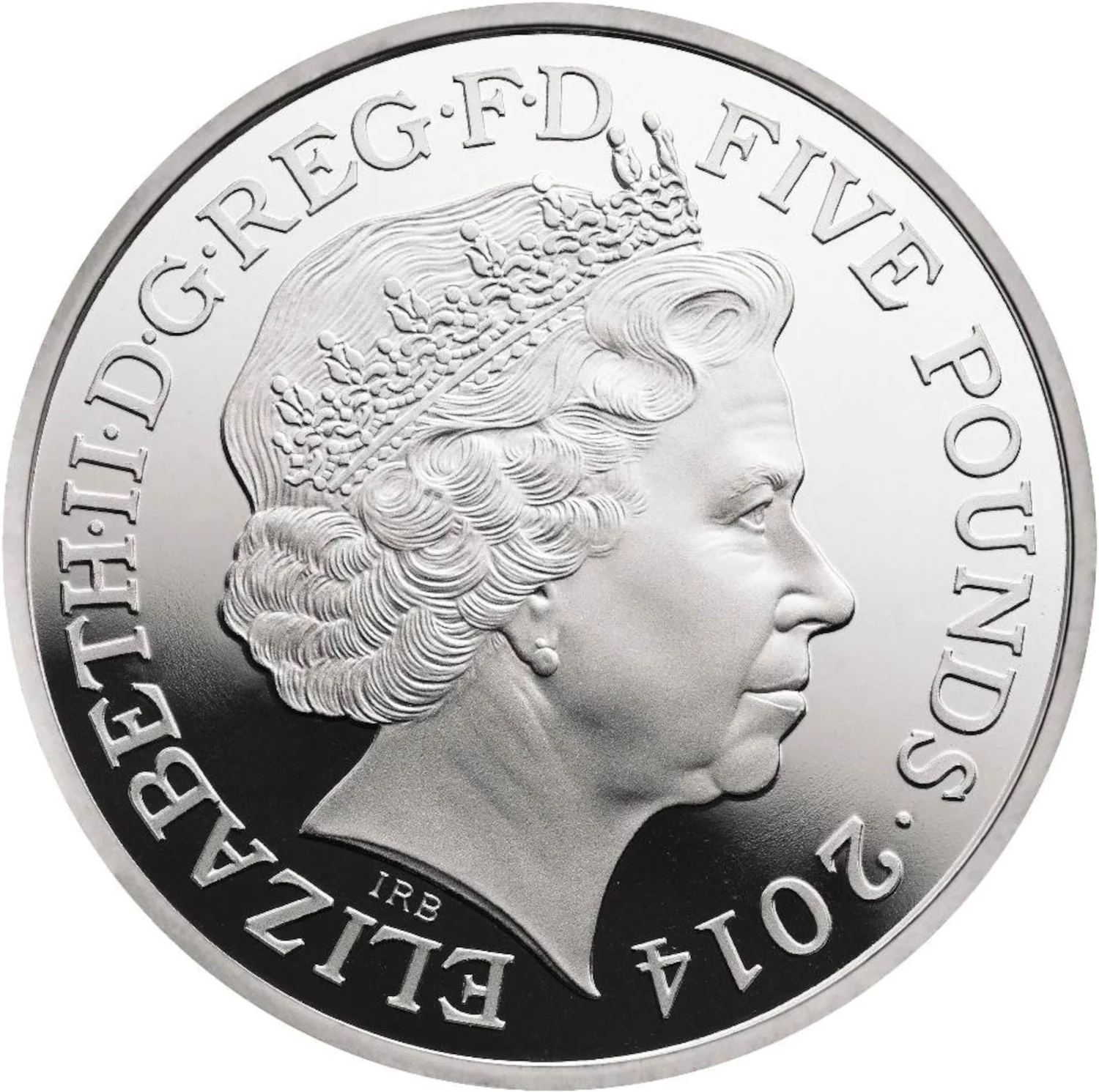 Elizabeth the Second, by the Grace of God, Queen, Defender of the Faith. Five Pounds 2014.