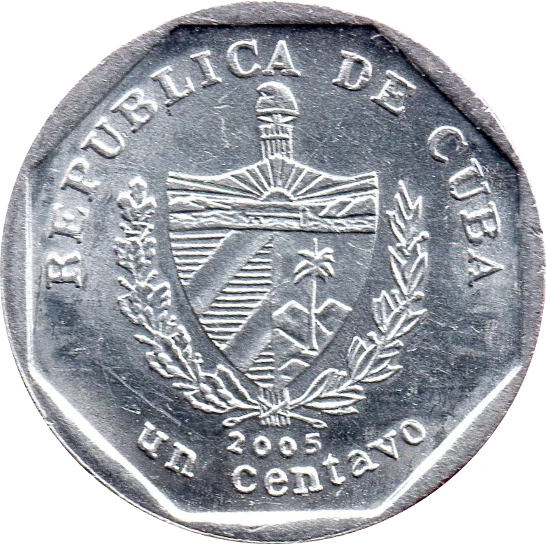 Cuban coat of arms with date, circular inscriptions: country name above, face value in words below; eight-sided edge.