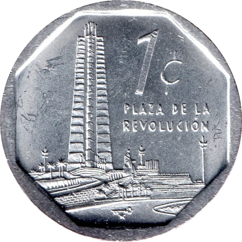 Havana's "Plaza de la Revolución" with numeral face value, place name, and an 8-sided edge ring.