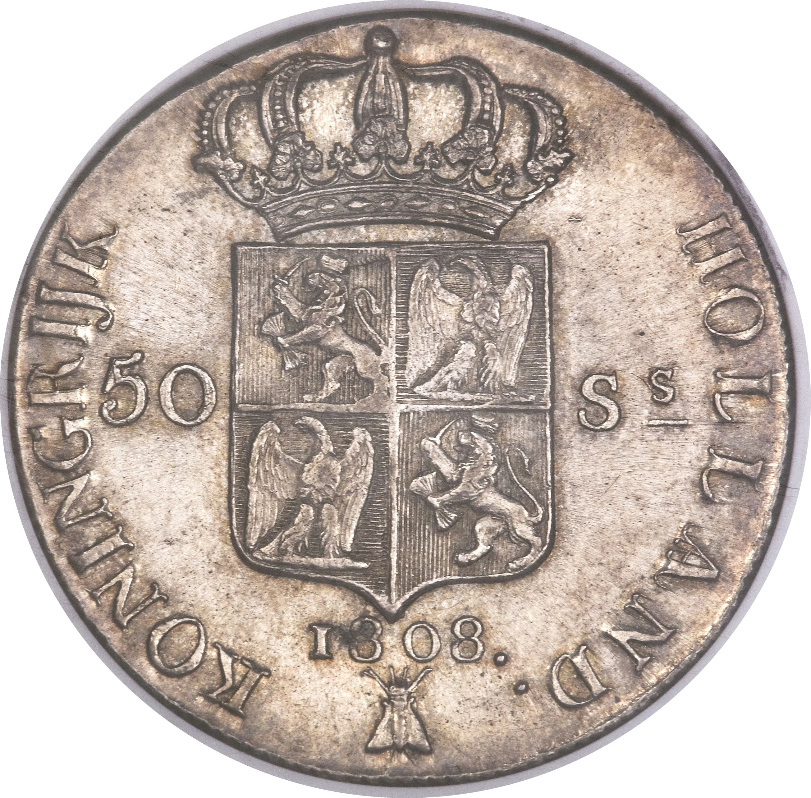 Crowned Holland arms splits value. Year and mint mark beneath.