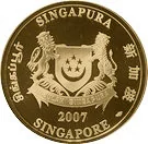 Emblem with date; 'Singapore' encircles it in English, Tamil, Chinese, and Malay.