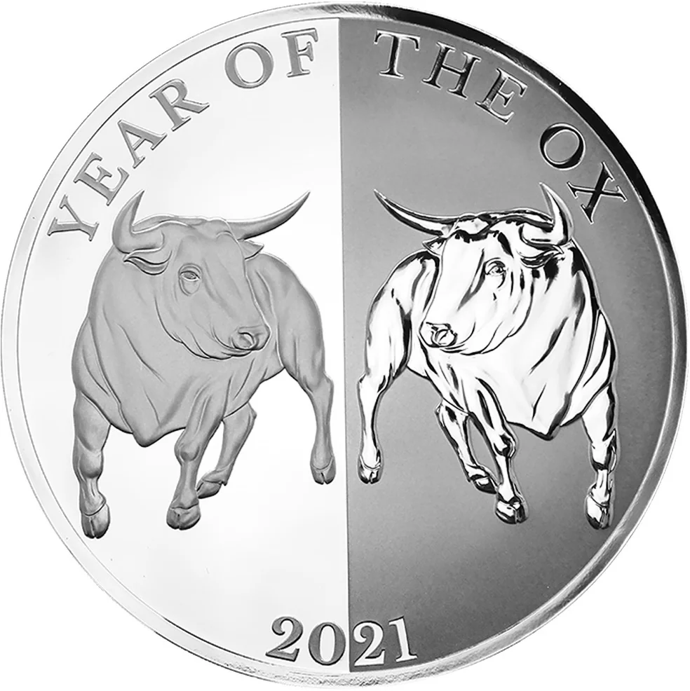 Mirrored ox images: one side proof, the other reverse proof, with deeply polished mirrored areas.