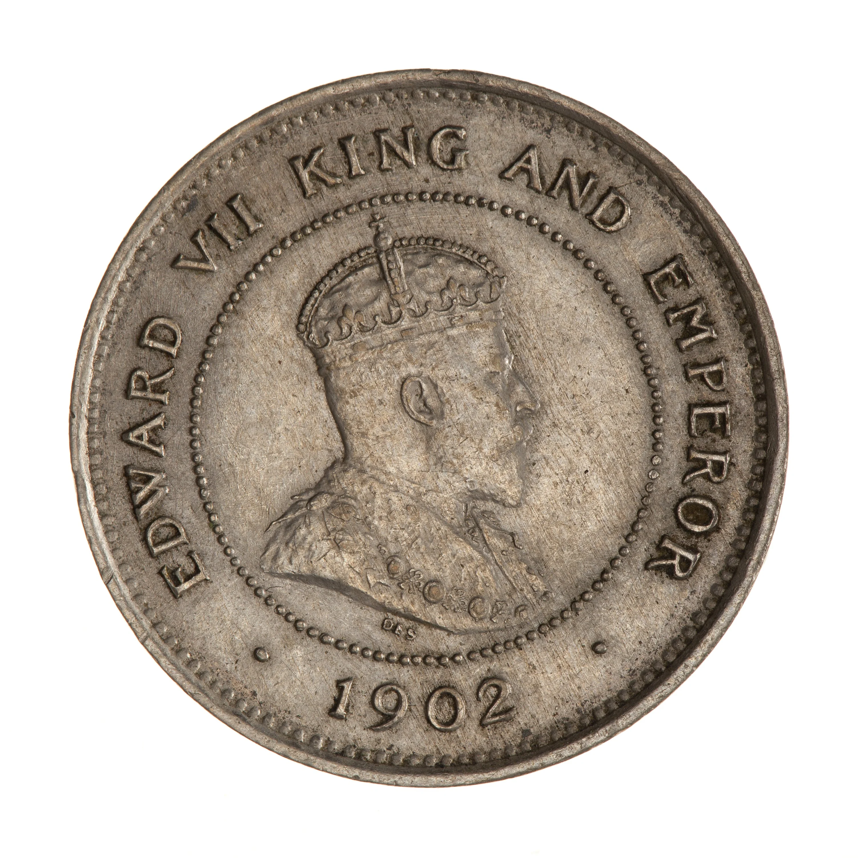 Edward VII's right-facing bust in a beaded circle, surrounded by legend.