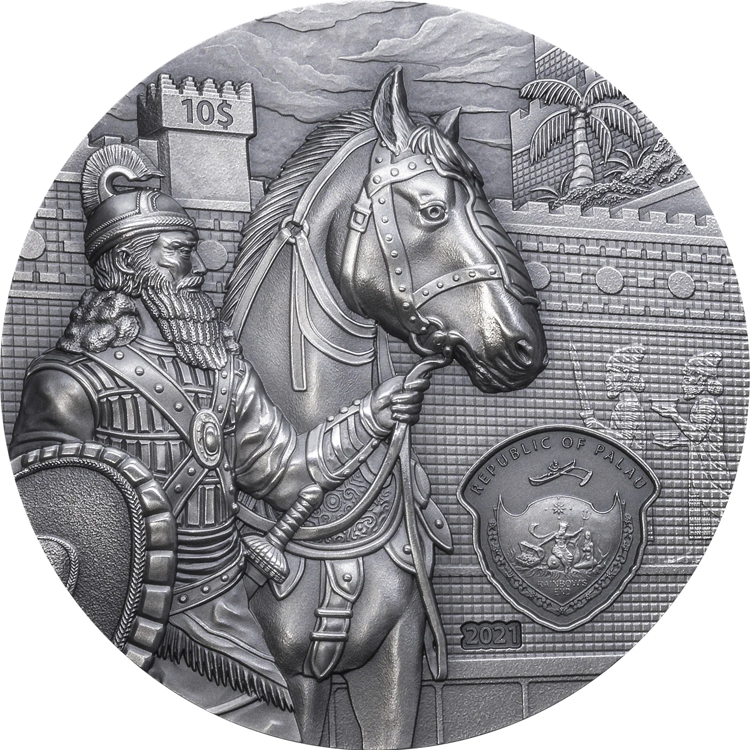 Palau's Coat of Arms featuring a Babylonian horseman.
