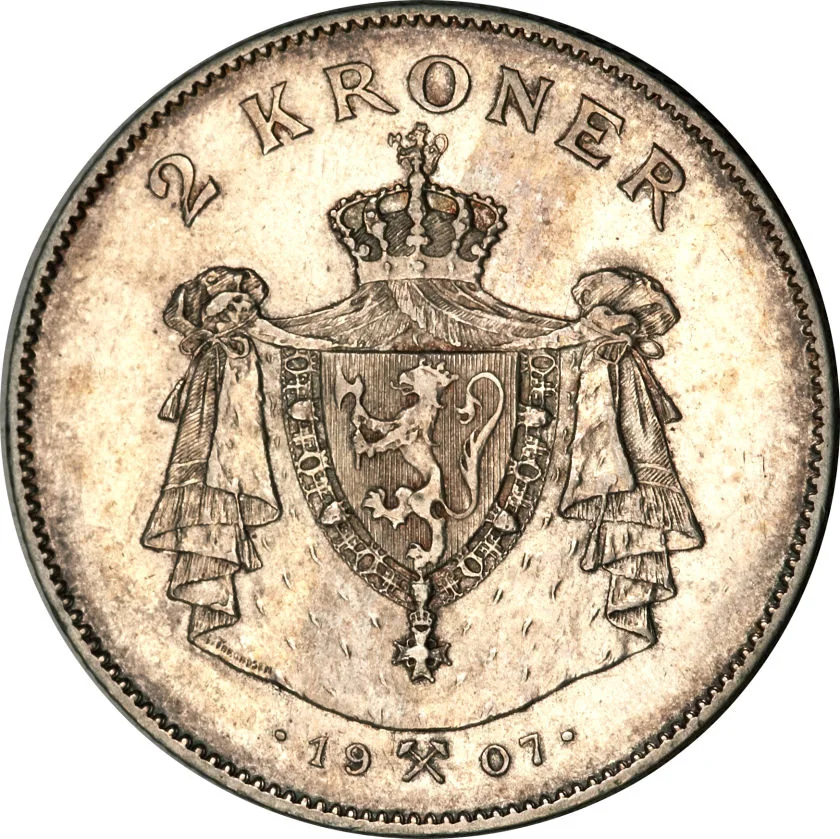 In 1907, Norway's currency situation was defined by its membership in the Scandinavian Monetary Union (SMU), established with Sweden in 1875 and joined by Denmark in 1873. This union created a common gold standard, where the Norwegian krone was pegged to gold and was legally interchangeable with the Swedish krona and Danish krone at par value. The system facilitated seamless cross-border trade and monetary stability, with coins circulating freely across all three nations. By 1907, the union was functioning smoothly in practice, though the formal treaty had not been renewed since its initial expiration in 1905, the year of Norway's peaceful dissolution of its union with Sweden.