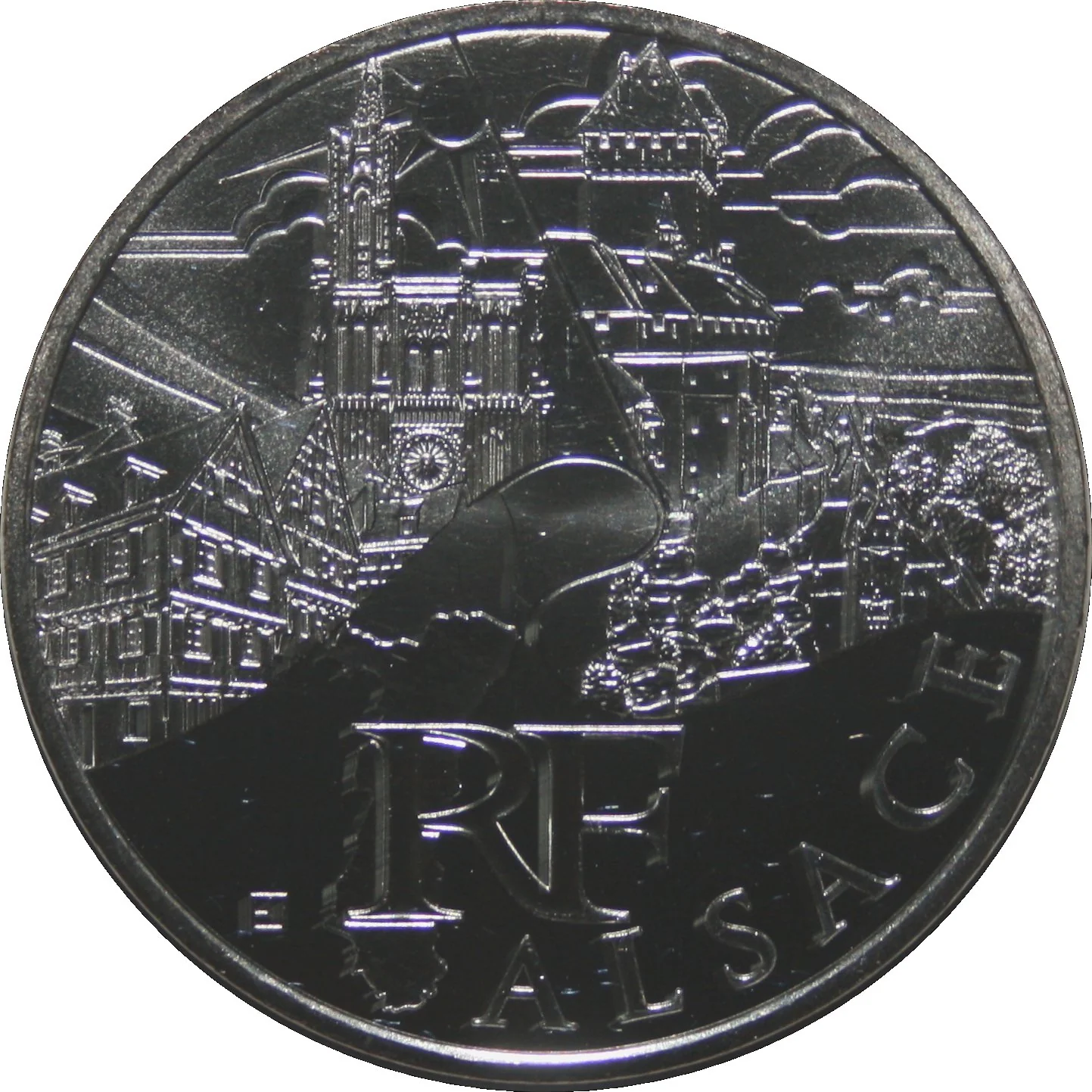 Alsace region outline featuring Colmar's historic center, Strasbourg Cathedral, and Haut-Koenigsbourg Castle.