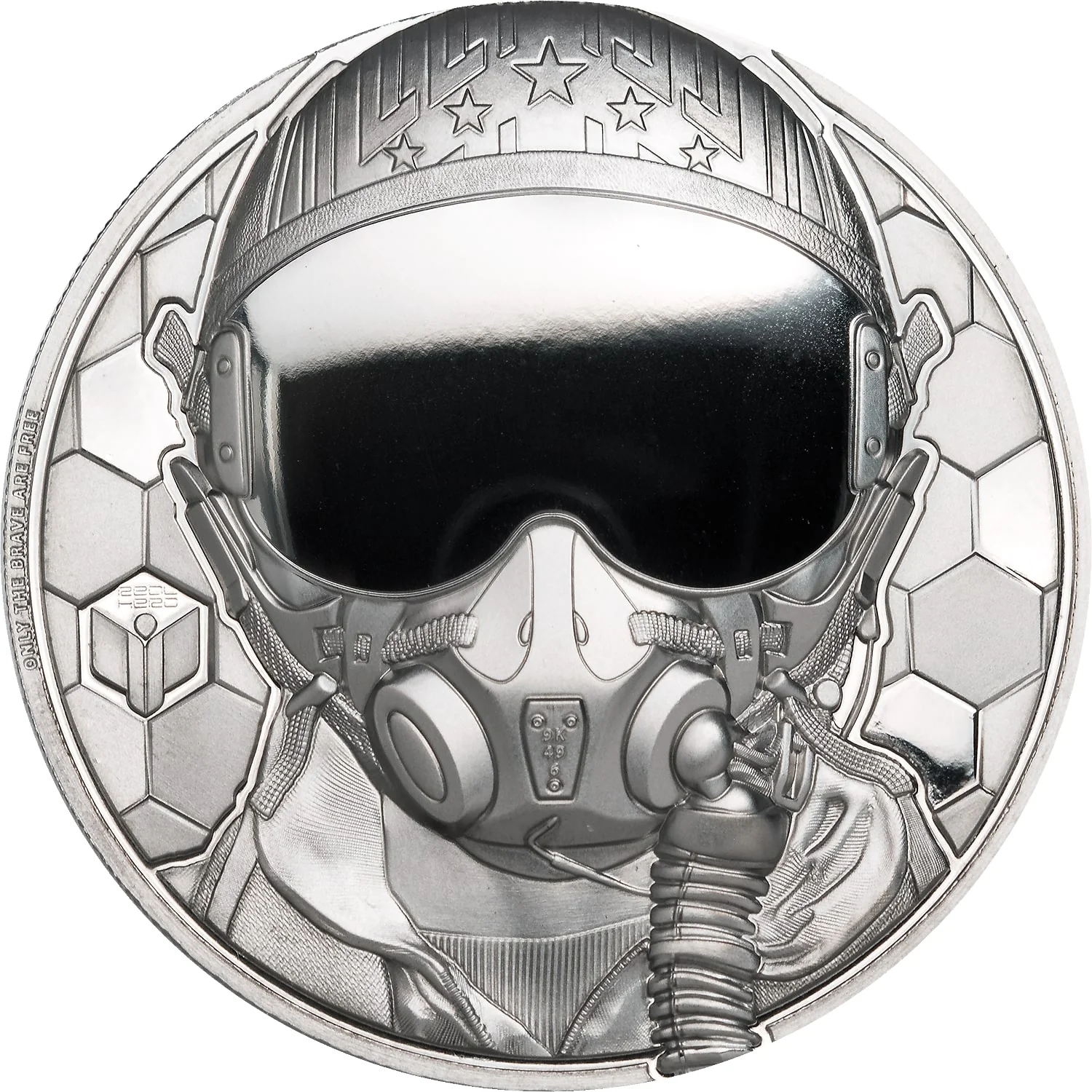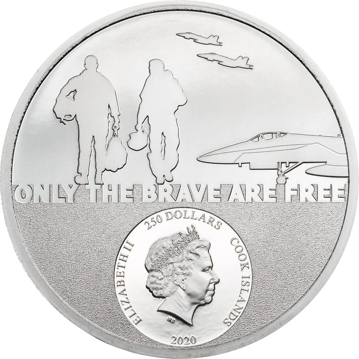 Queen Elizabeth II's effigy with two pilot silhouettes.