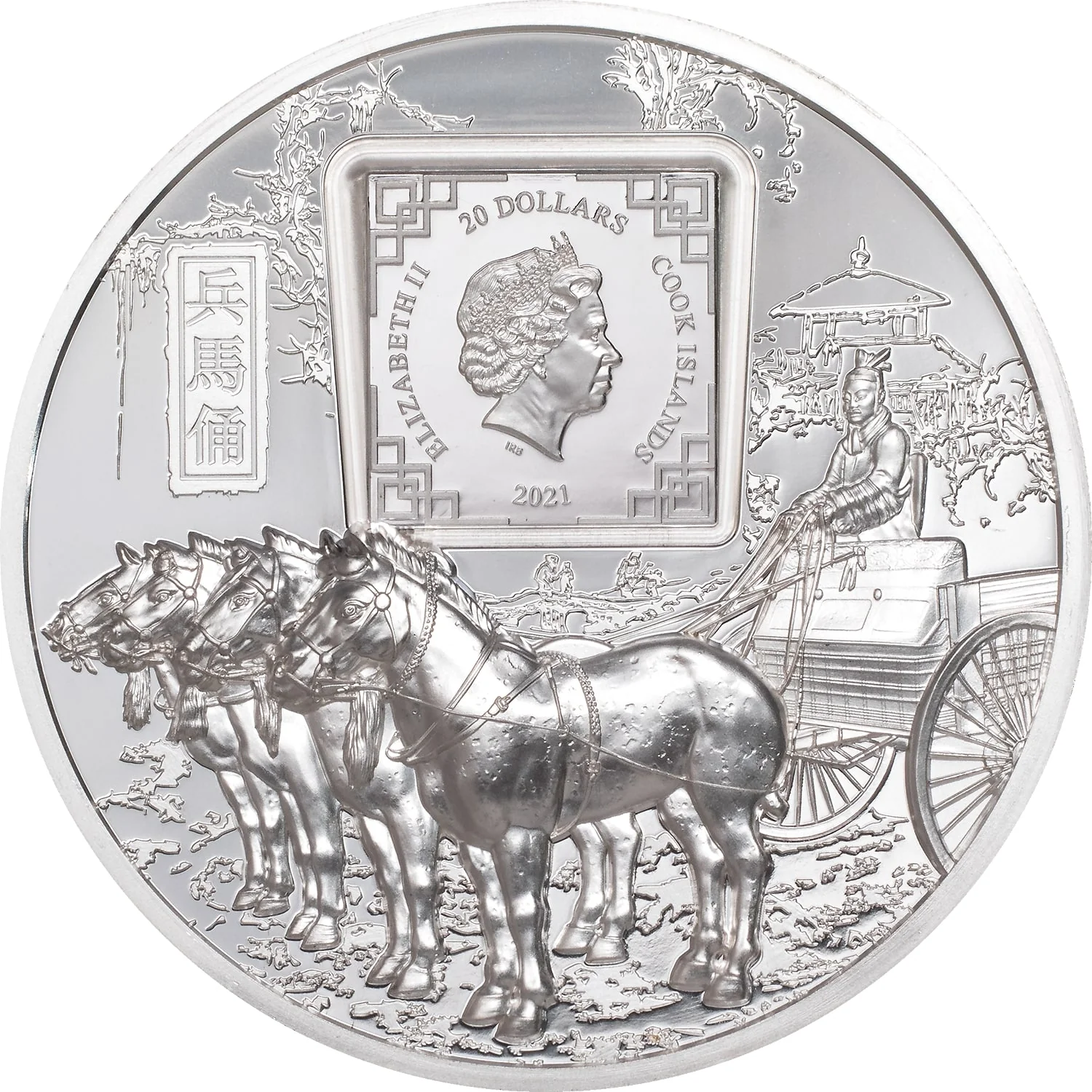 Queen Elizabeth II as a terracotta warrior on a chariot.