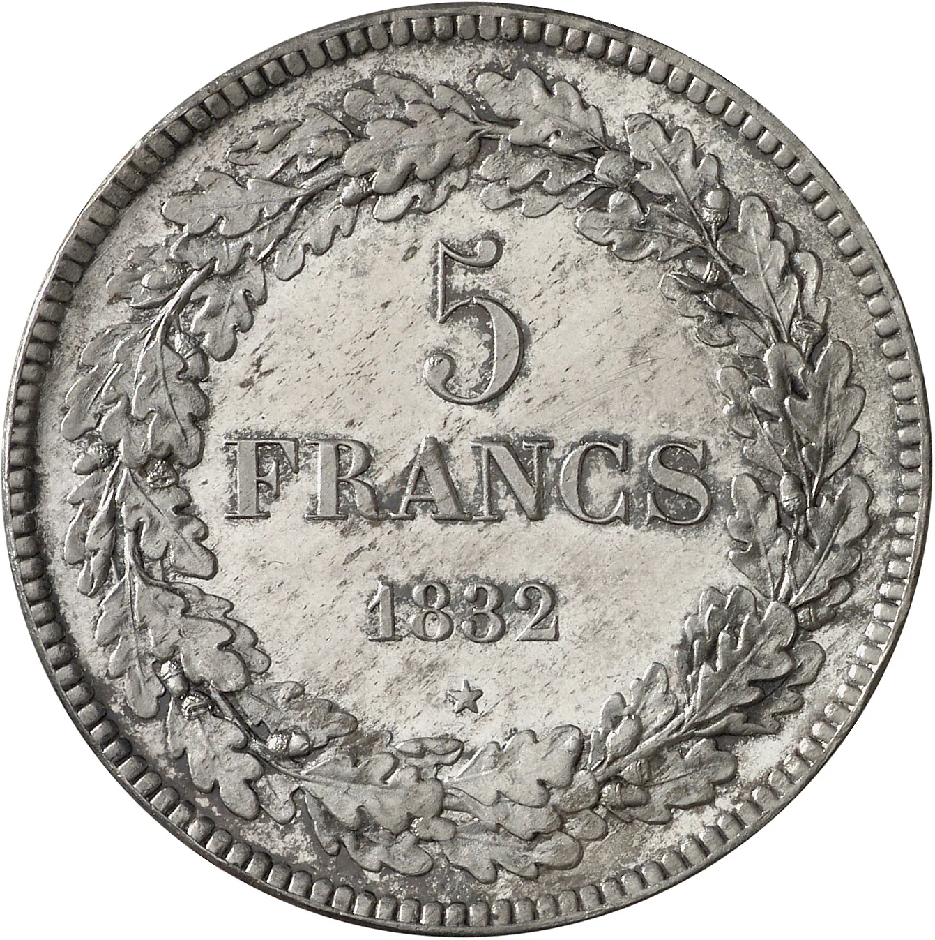 In 1832, Belgium was navigating the complex monetary aftermath of its recent independence. The new nation, formally recognized just a year prior, inherited a chaotic currency landscape from the period of Dutch rule (1815-1830) and the subsequent revolution. Multiple coinage systems circulated simultaneously, including Dutch guilders, French francs, and older Austrian and regional issues, leading to confusion in commerce and hindering economic stability. The provisional government had taken initial steps by decreeing the French franc as the official monetary unit, but establishing a unified, sovereign currency system was a critical task for the fledgling state.