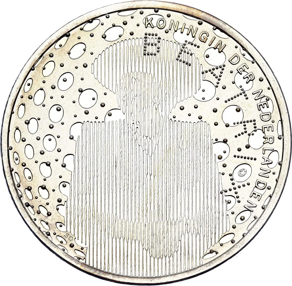 A hologram of Queen Beatrix, with the common issue logo to her left.