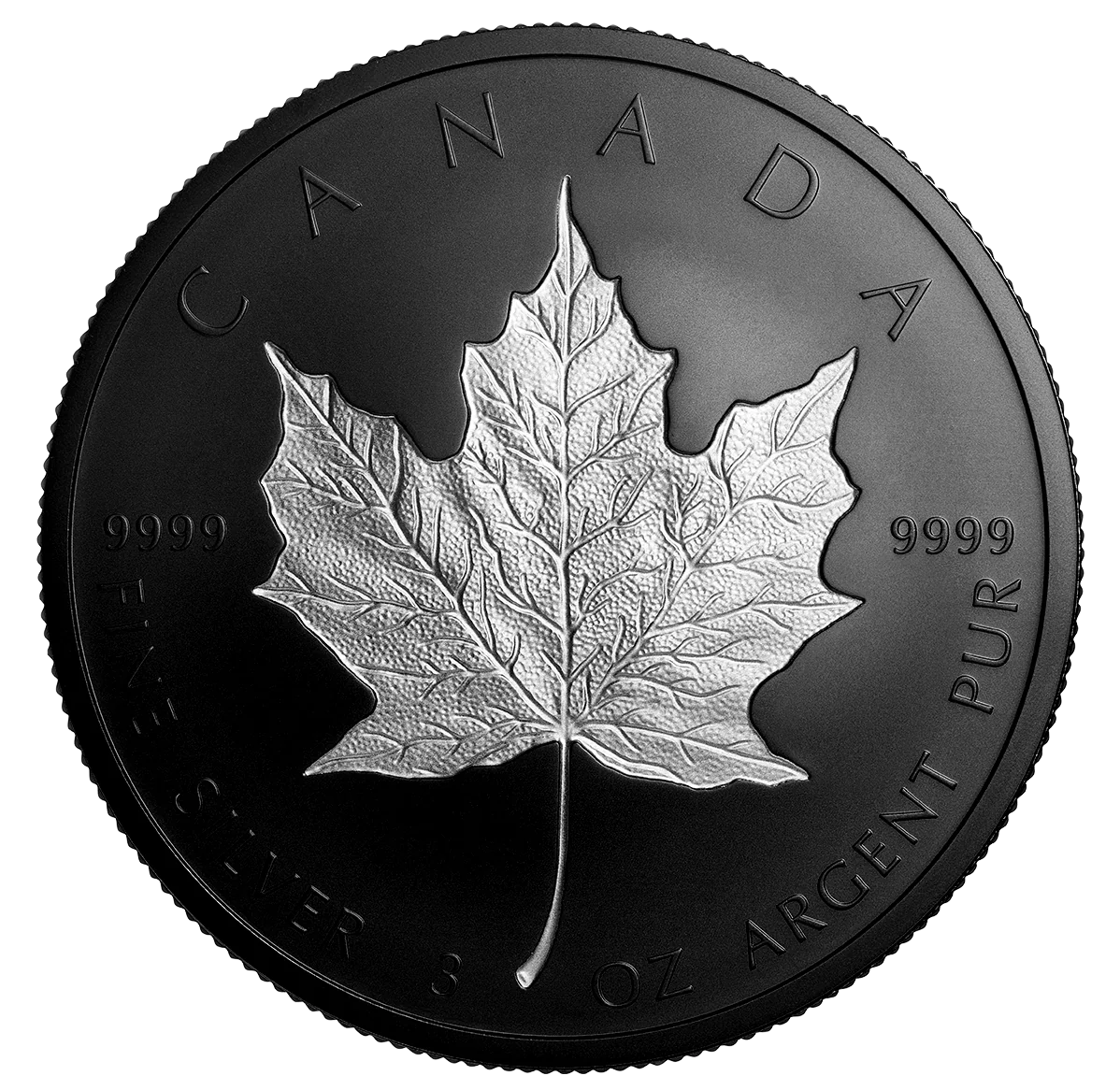 Featuring Walter Ott’s iconic sugar maple leaf, struck incuse and unchanged since 1988. Black rhodium plating fills the field, highlighting the engraved relief in natural silver.