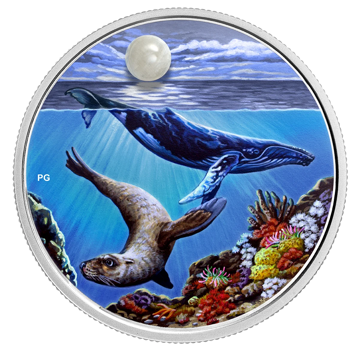 A black-lit deep-sea habitat off Canada, where a scapolite moon illuminates endangered humpback whales and Steller sea lions.