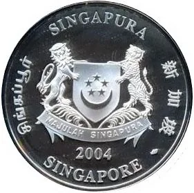 Emblem with date; 'Singapore' encircles it in English, Tamil, Chinese, and Malay.