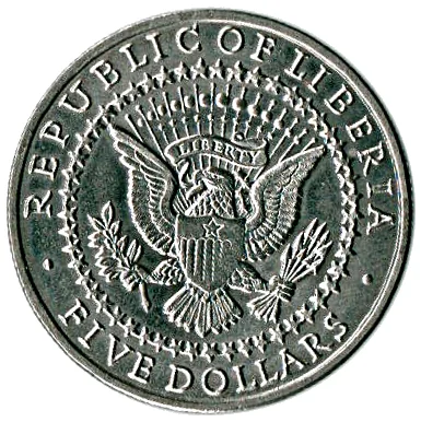Modified U.S. presidential seal (LIBERTY replaces motto, star added atop shield) within REPUBLIC OF LIBERIA above and denomination below.