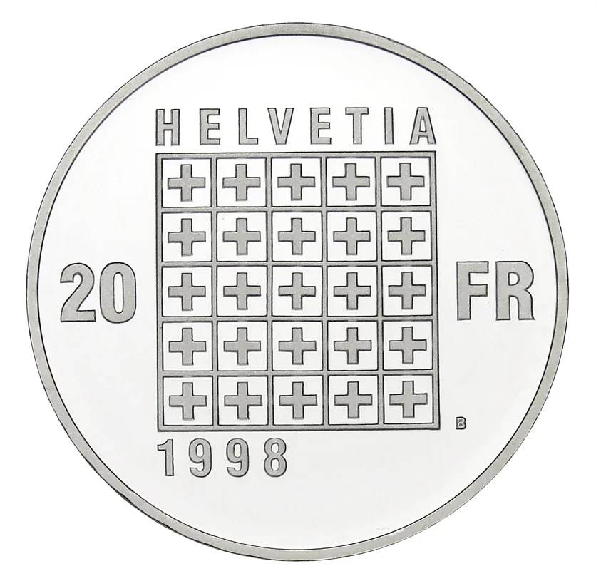 1798 Helvetic Republic 40 batzen coin obverse. Square frame with Swiss crosses on left and right.