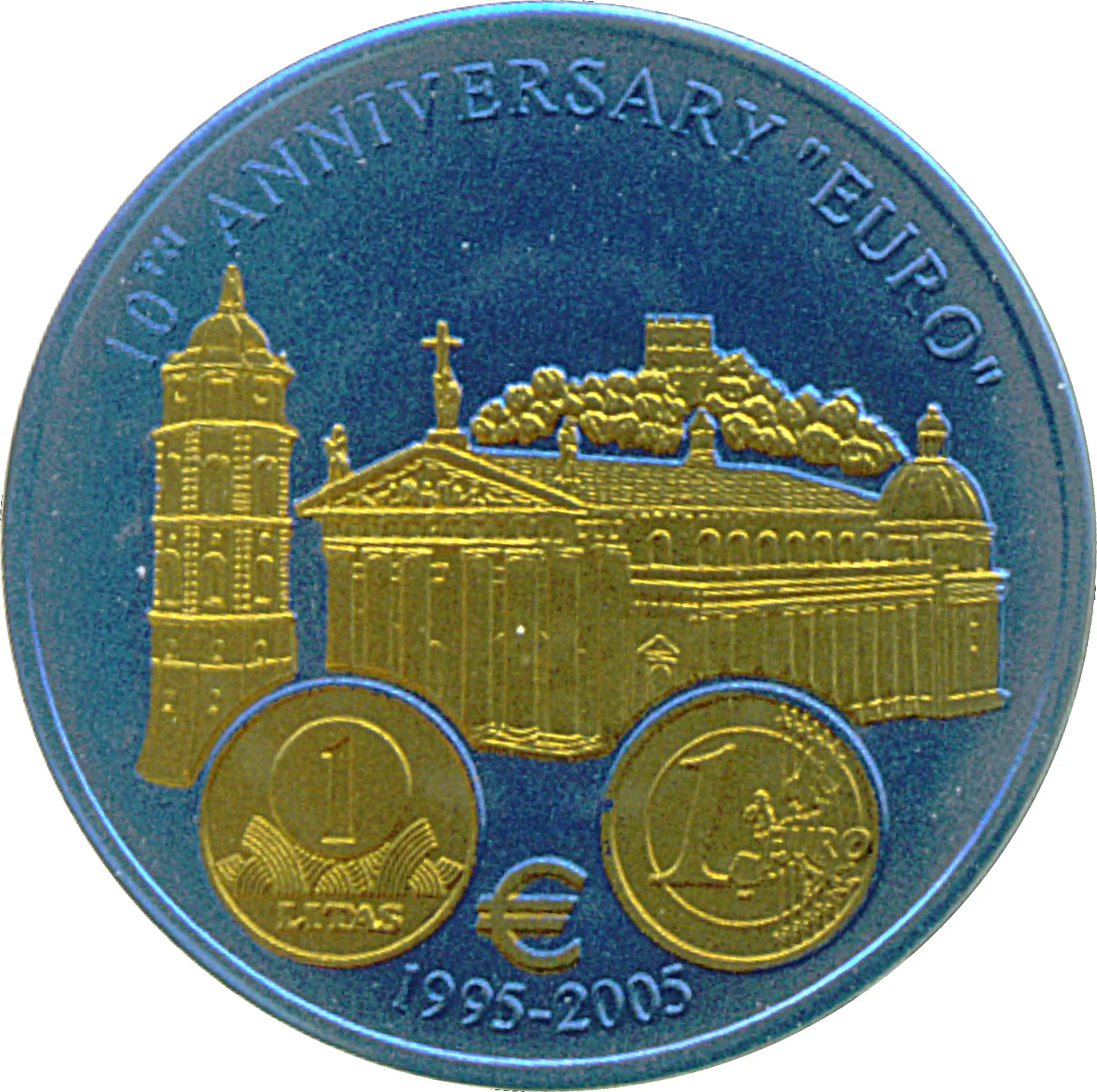 Vilnius Cathedral on the 1 Litas (KM# 111) and 1 Euro coins.