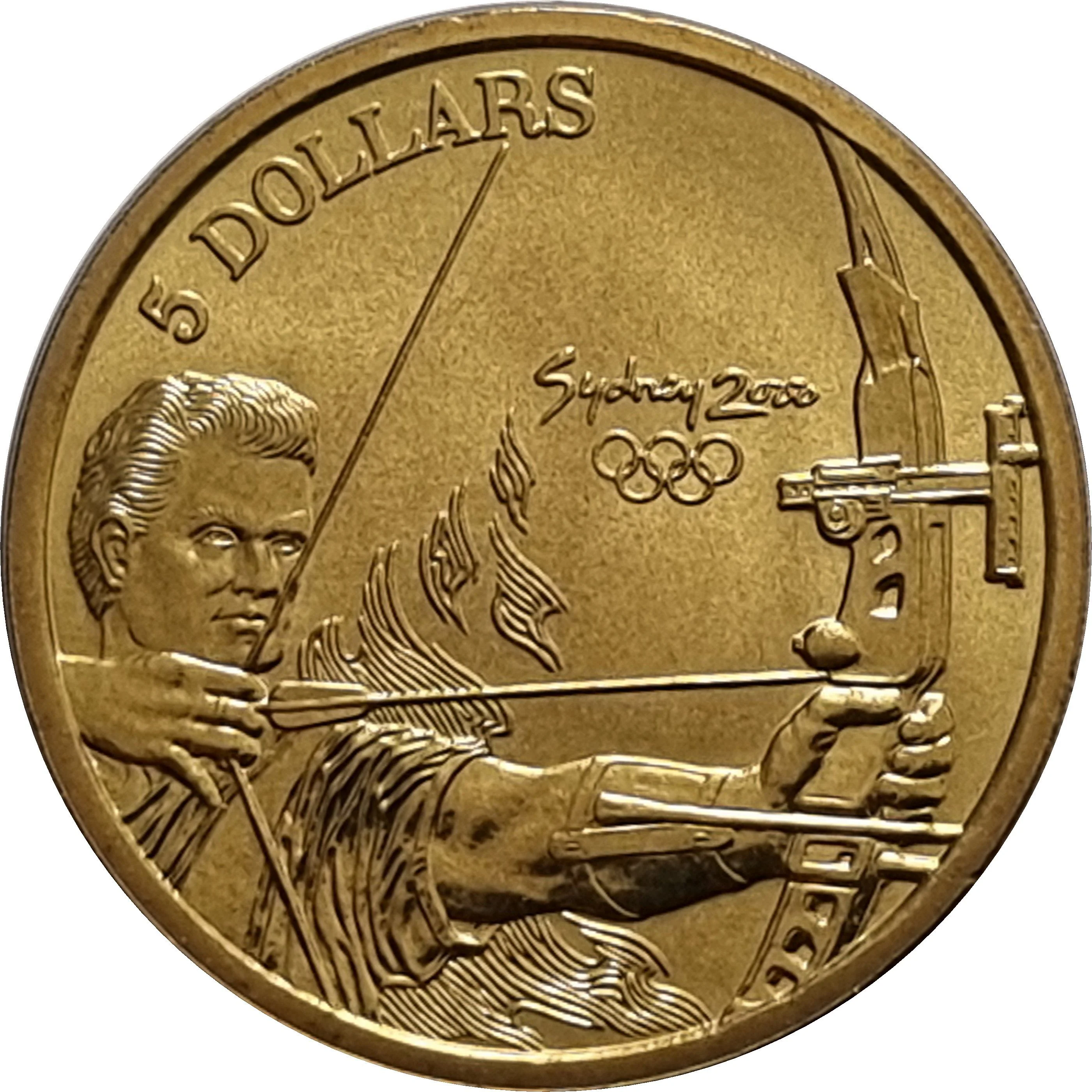 An archer aiming, with Olympic rings under the Sydney 2000 logo.