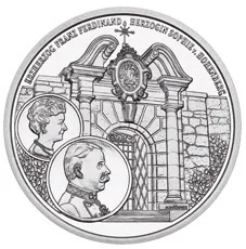 Archduke Franz Ferdinand and his wife Sophie in profile before their crypt at Artstetten Castle.