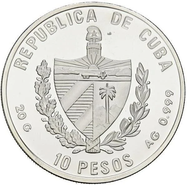 Cuban coat of arms, weight, and fineness on sides; face value below. Design matches others in the series.