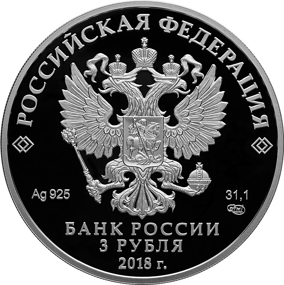 The obverse features the Russian Federation coat of arms with the country name above. Below are the metal specifications, mint mark, and the inscriptions "BANK OF RUSSIA," "3 ROUBLES," and the year.