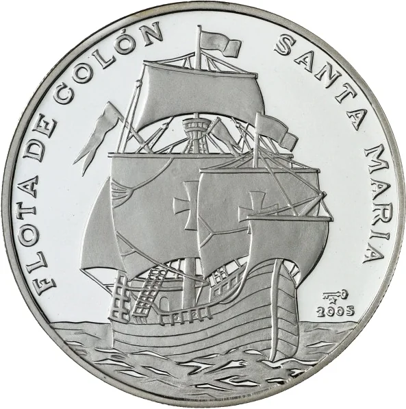 Santa Maria ship, circular inscription with event and vessel names, mintmark and date at lower right.
