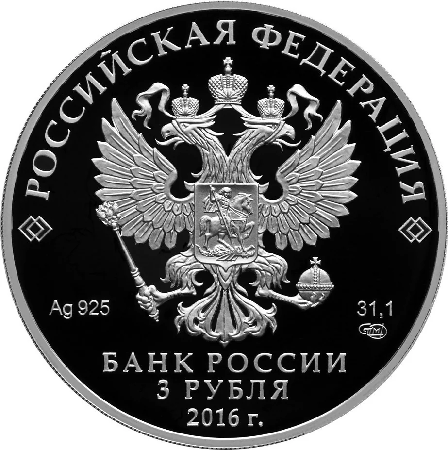 The obverse features the Russian Federation coat of arms with the country name above. Below are the metal specifications, mint mark, and the inscriptions "BANK OF RUSSIA," "3 ROUBLES," and the year.