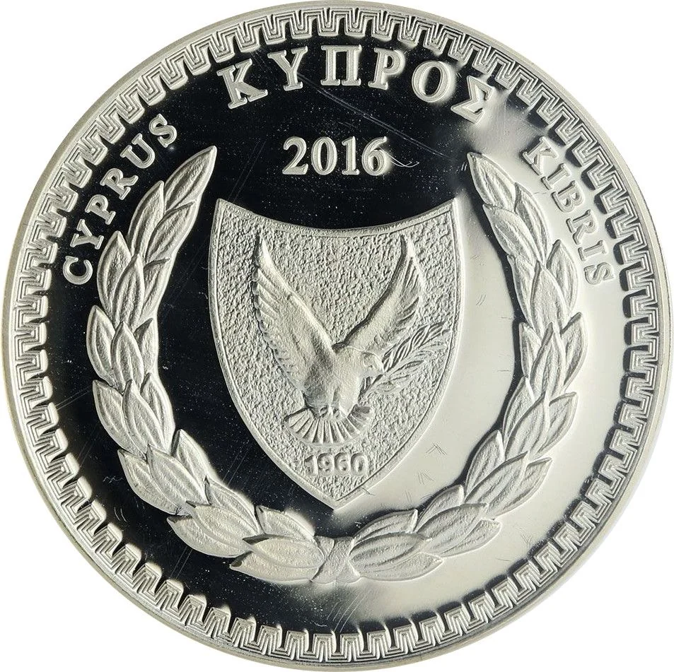 Central Bank of Cyprus emblem with a semicircular inscription above: "CYPRUS • ΚΥΠΡΟΣ • KIBRIS" and the year "2016".