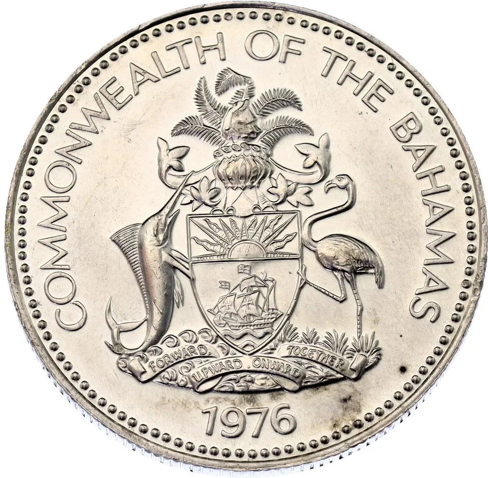 Bahamas national arms above date.