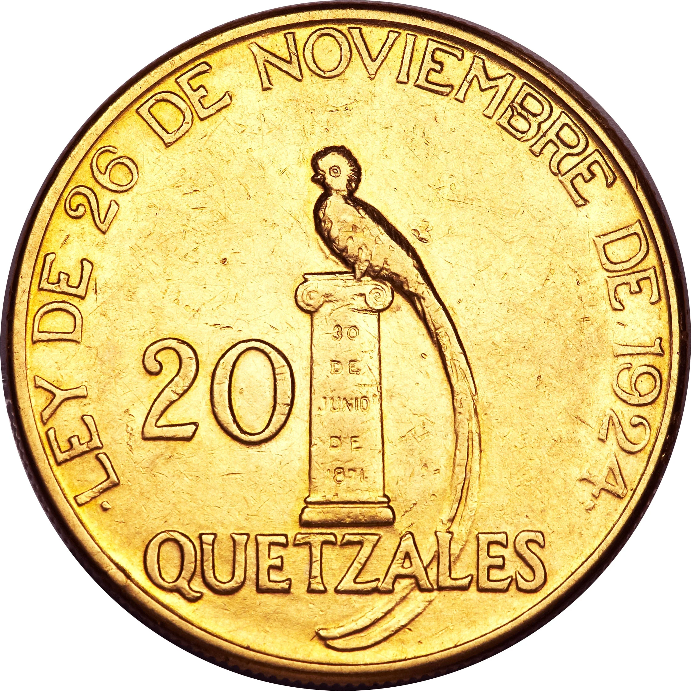 In 1926, Guatemala's currency system was in a state of transition, moving away from the historic silver peso and fully embracing the gold standard under the administration of President José María Orellana. The nation's monetary landscape had been unstable for decades, with a proliferation of foreign coins, private banknotes, and devalued silver. A key turning point came in 1924 with the creation of the Quetzal (GTQ), named after the national bird, which was defined to be equal to one United States dollar and backed by gold reserves. The Quetzal replaced the peso at a rate of 60 pesos to 1 quetzal, a dramatic revaluation aimed at imposing fiscal discipline and attracting foreign investment.