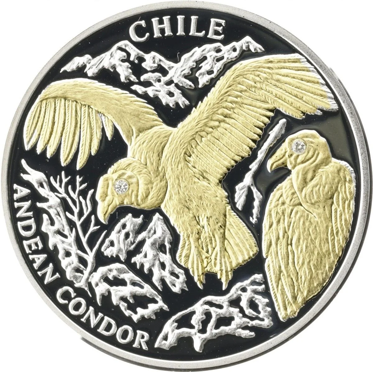 Two gilt condors: one mid-flight, one perched.