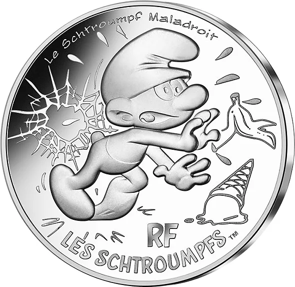 "10 EURO" flanked by laurel and oak branches, encircled by "RÉPUBLIQUE FRANÇAISE" and three hexagons.