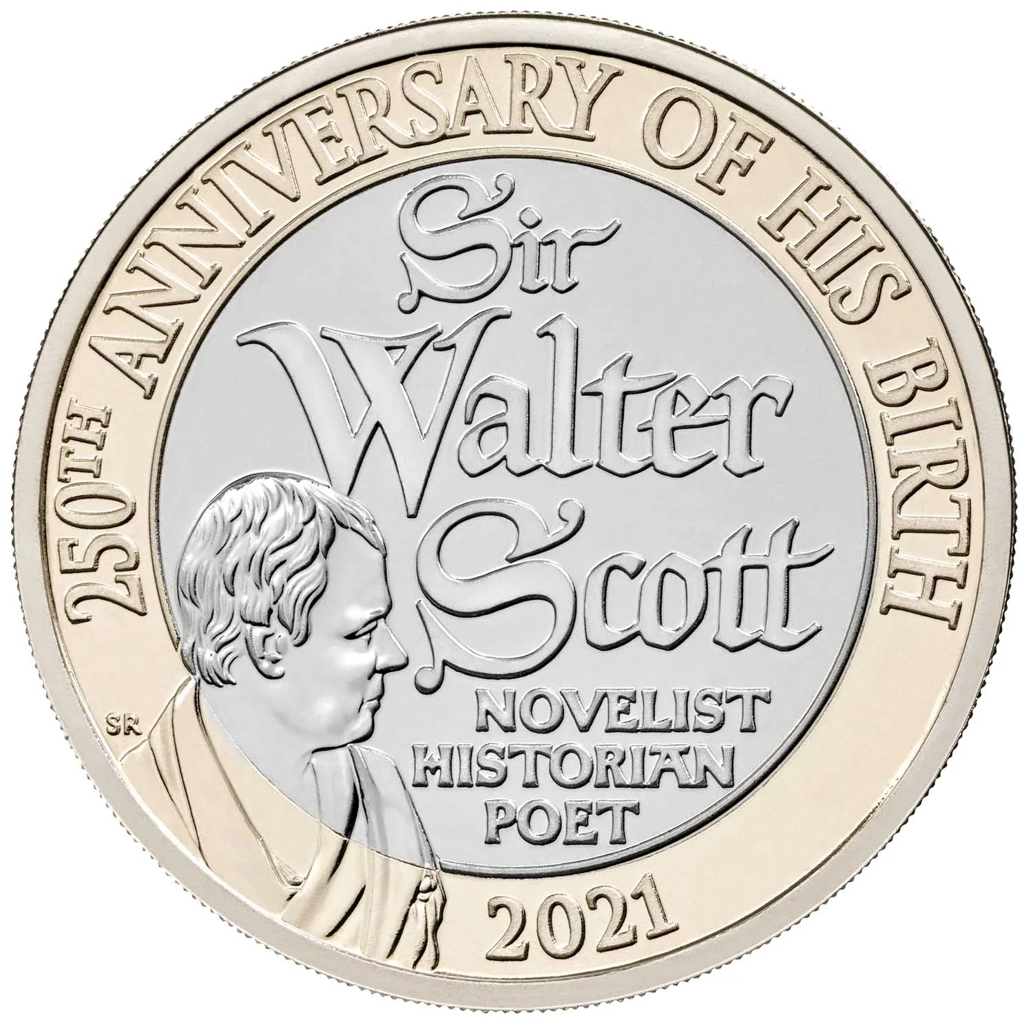 Sir Walter Scott portrait, central inscription, encircling legend, date beneath.