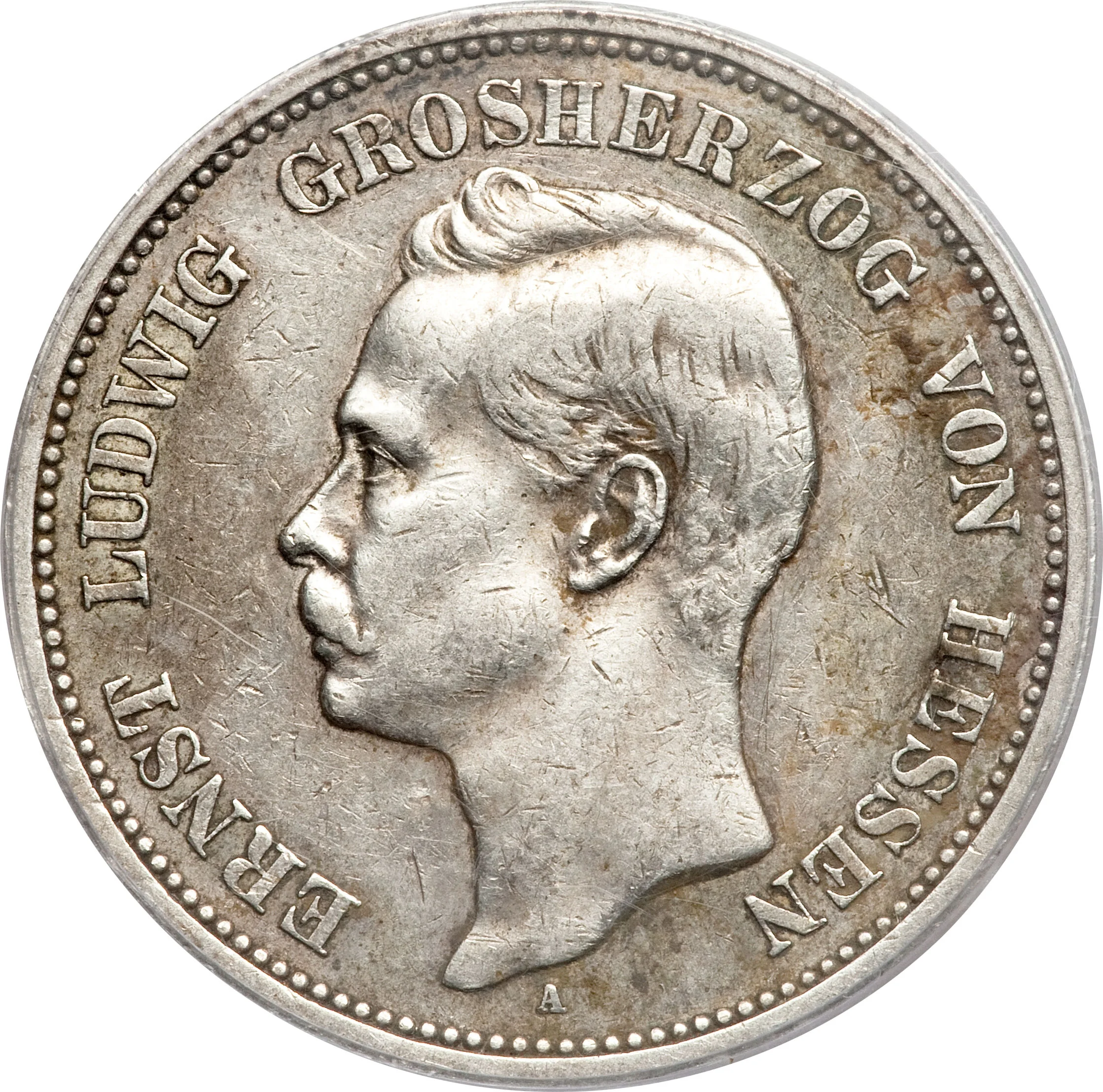 Grand Duke Ernst Ludwig bust, left, encircled by legend.